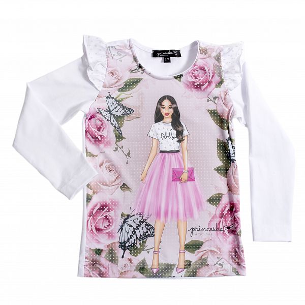 Kolekcija oblačil Princeska, je bila ustvarjena za princeske, ki želijo biti drugačne. Majčka ima kakovosten tisk vile, s cvetličnim vzorcem. Piko na i, dajejo volančki in unikatno/ročno dodani kristalčki ter perlice. V majčki, ki je limited edition, bo blestela vsaka princeska. Enako majčko je možno naročiti tudi v večjih velikostih za mamice.